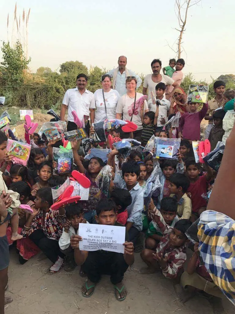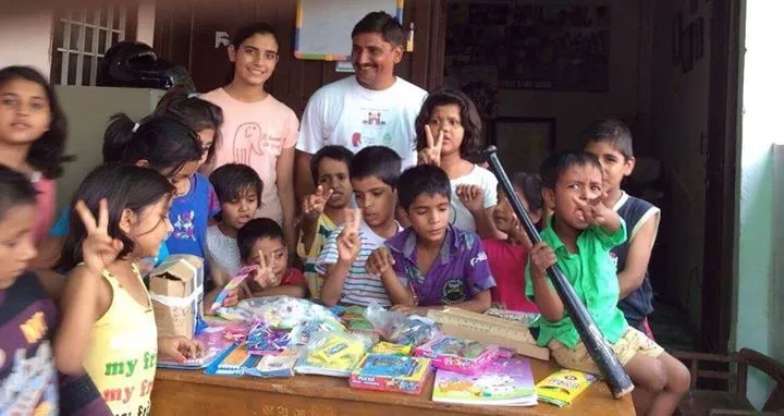 9. Given 165 bags of goodies 3 times (t-shirt, coloring books, crayons, toys and flip- flops to the village kids in a poor part of Mathura.