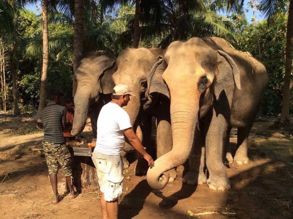 10:30: You will go on an observation walk through the coconut grove with the elephants and their caregivers